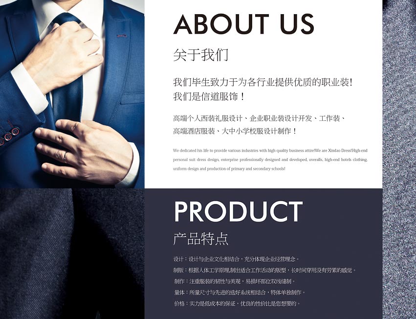 济宁信道服饰有限公司生产实力雄厚,目前公司采用进口高端设备,流水线作业生产,采用国外进口面料和国内知名企业的高端面料。公司主要生产中高端西服、衬衫、夹克工装、T恤、广告衫、运动服、商场工作制服、促销服、校服、医院工作护士服、航空公交服、其它行业服装和各类特种工装(如防静电、防尘、防油、防水、阻燃等),并专业为银行,证券,保险业和金融业,邮电,公检法,保安,环卫检察,交通协管和运输等行业定制工作制服。并承接外贸和时装定单。